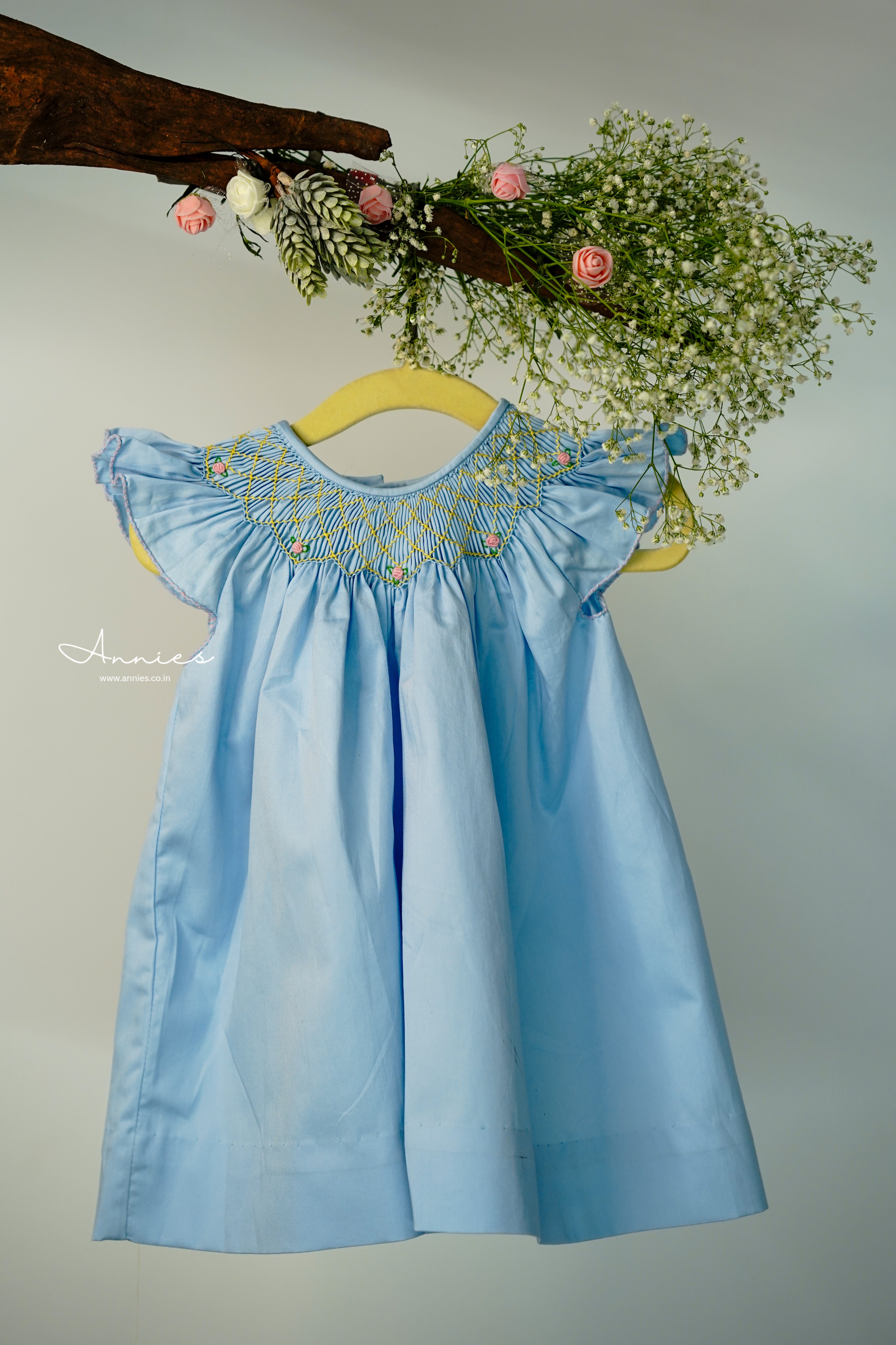 Handmade Blue Smocked Bishop Dress for Babies