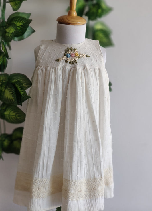Handsmocked Offwhite Dress Color embroidery