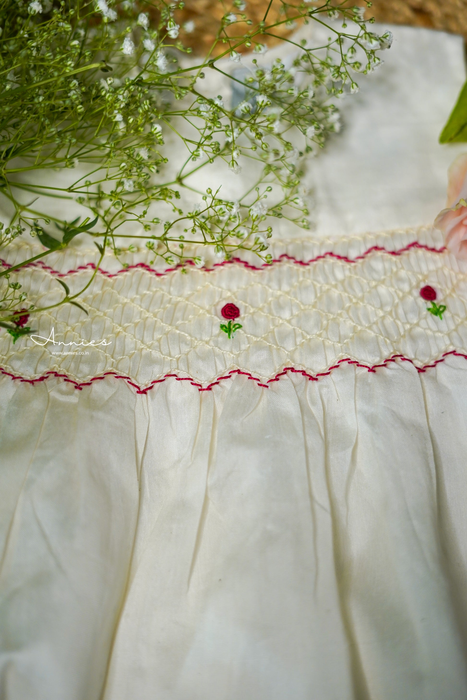 The Hand Smocked Chanderi Top is a perfect match with denim shorts or jeans, offering a stylish and effortlessly chic look.