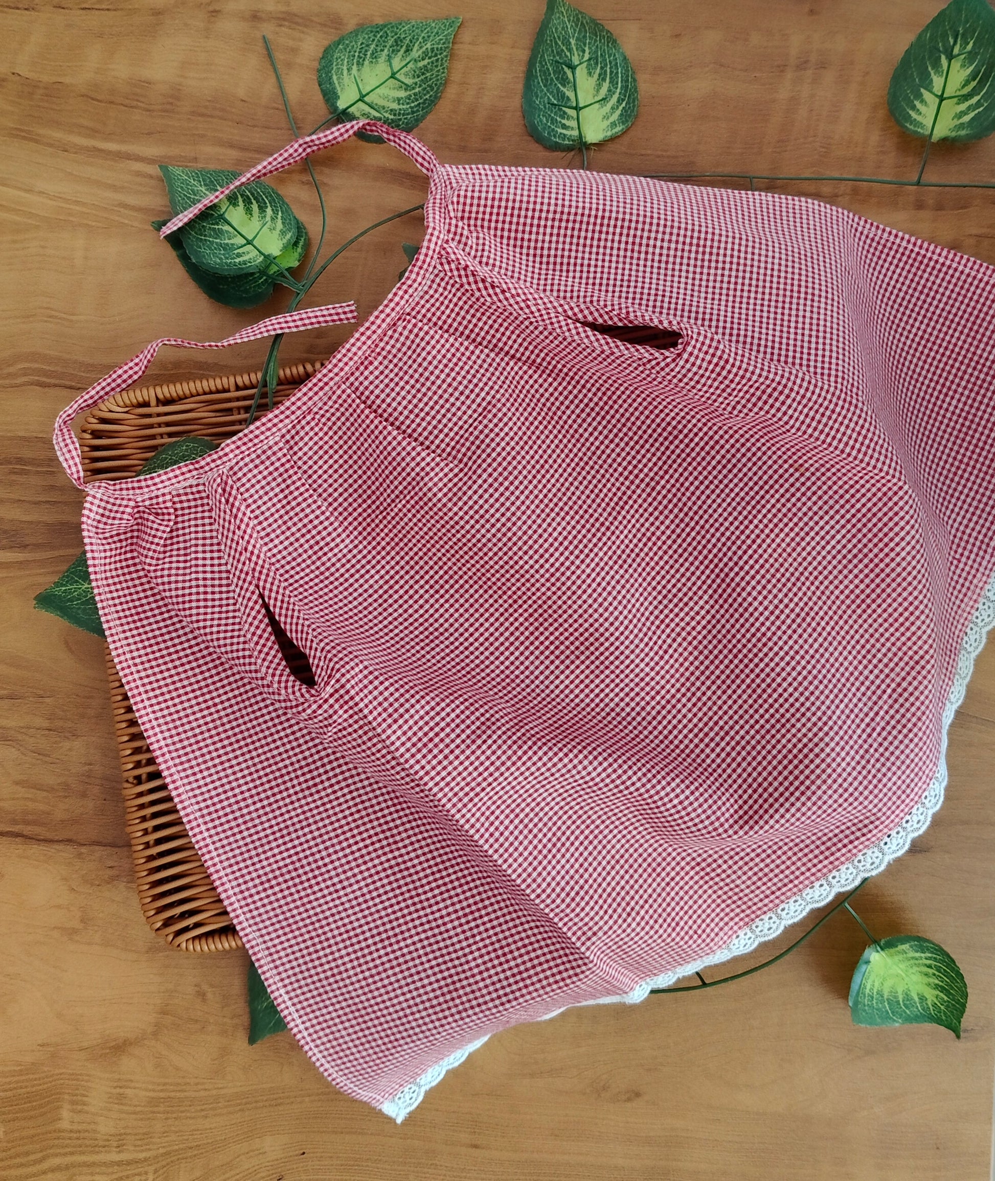 The Newborn Red Check Kettudupu is crafted from 100% cotton, ensuring breathability and comfort for sensitive skin. The tie-up design allows for an adjustable fit, accommodating growth in the early months. Its classic red check pattern offers a timeless aesthetic suitable for various occasions.